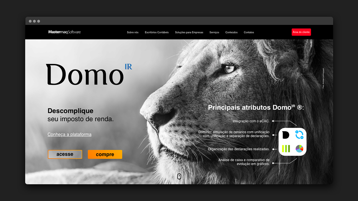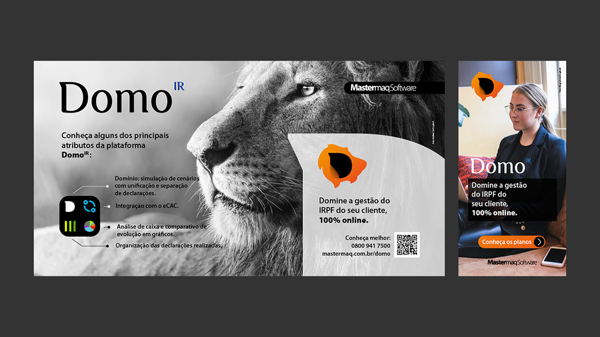 Com o propósito de descomplicar a declaração do imposto de renda, através da clareza na evolução patrimonial, de caixa e dos rendimentos do seu cliente, a Mastermaq apresenta a solução Domo IR. Uma plataforma web voltada para a gestão do imposto de renda, trazendo flexibilidade no acesso as declarações. O objetivo do projeto foi apresentar uma nova marca que transmitisse robustez, transparência e simplicidade.