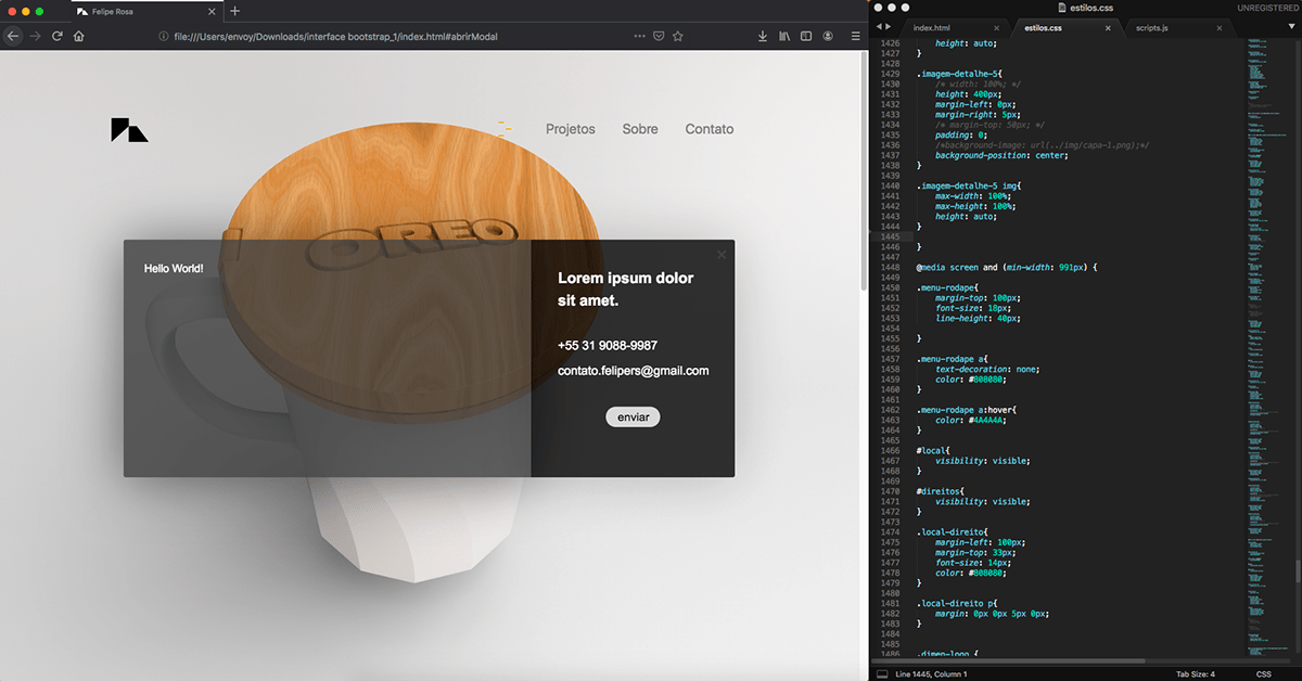 A construção da interface e cada linha de código têm a intenção de criar um espaço para a apresentação de trabalhos realizados e estabelecer um ponto de contato com possíveis clientes e parceiros.